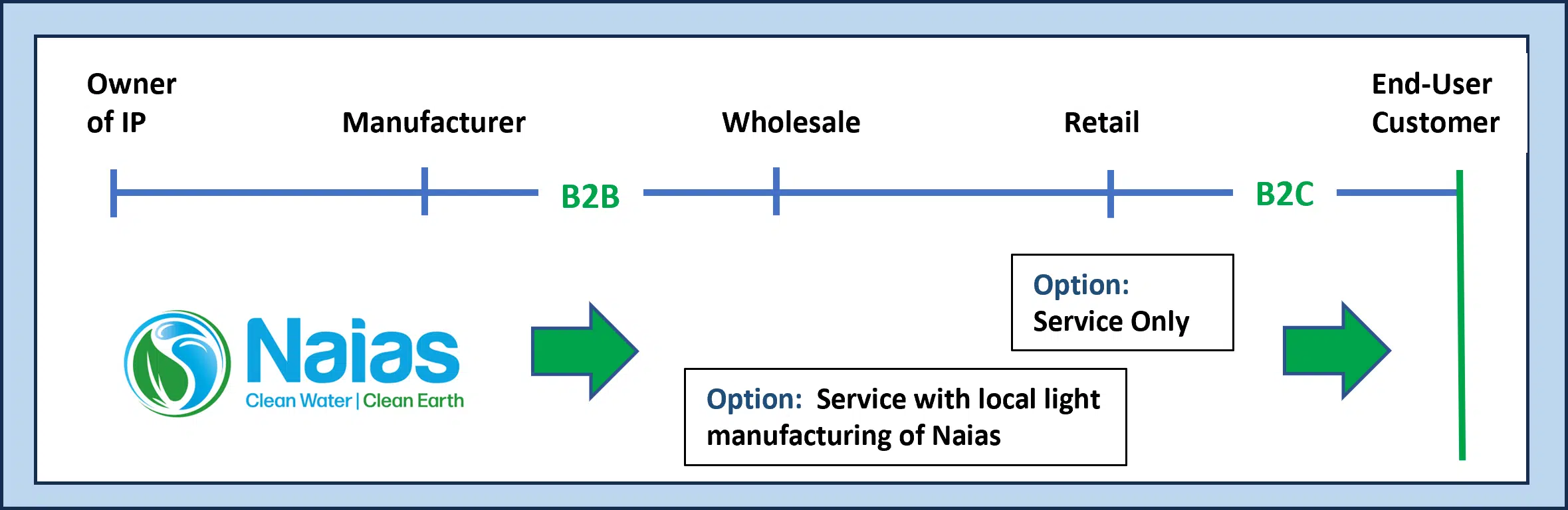 Naias Solutions is a US water-technology company, owner of intellectual property and trade secrets for a proprietary, unique gas injection technology that produces ultrafine nanobubbles with Hydroxyl Radicals to disinfect and increase dissolved oxygen level simultaneously in aqueous solution (i.e., water). Naias’ unit manufacturing is done in the US and also in South Korea, where work ethics and talent are at the highest level, with lower material costs compared to the US. The goal of Naias, however, is to find a qualified service partner in a local country to transfer Naias technology for localized assembly and light manufacturing, minimizing supply chain issues. The right qualified service partner will enter into an exclusive license agreement with Naias Solution as mutually agreed.